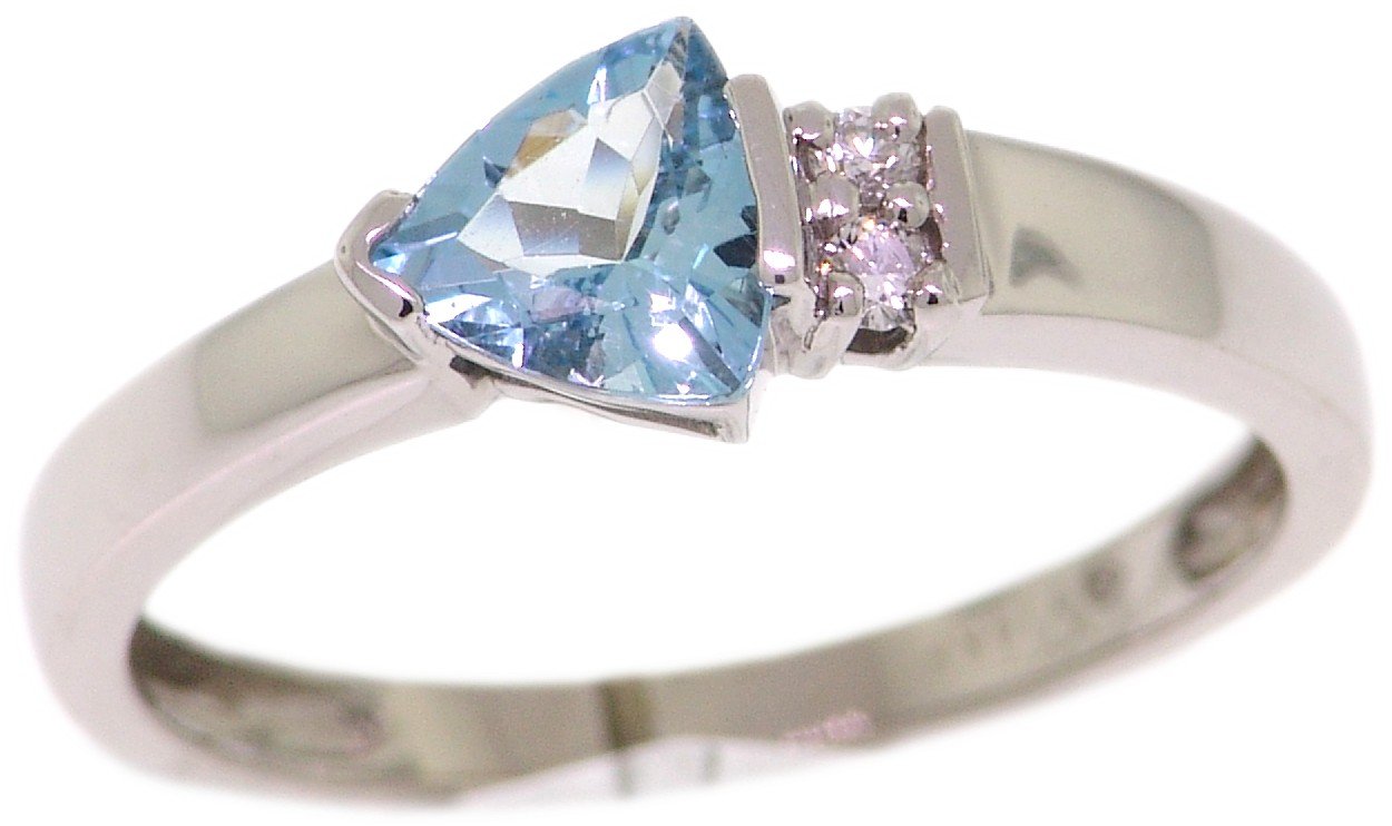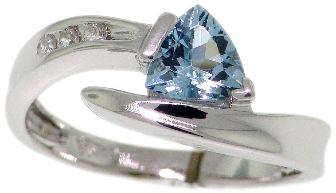 | Style # 4936 Ladies 6x6 Trill Aquamarine 3=.06TW 14k Ring Available in yellow or white gold. |