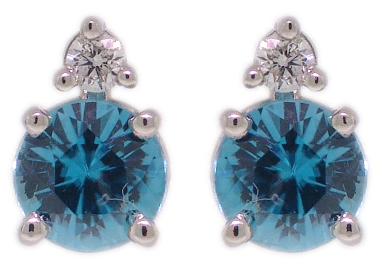| Style # 1815 Ladies 5MM Round Blue Zircon 2=.06TW 14k Earrings Available in yellow or white gold. |