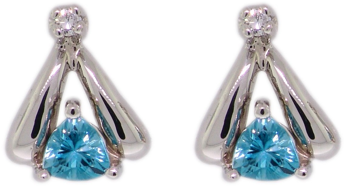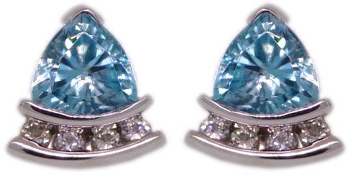 | Style # 3587 Ladies 5x5 Trill Blue Zircon 8=.12TW 14k Earrings Available in yellow or white gold. |