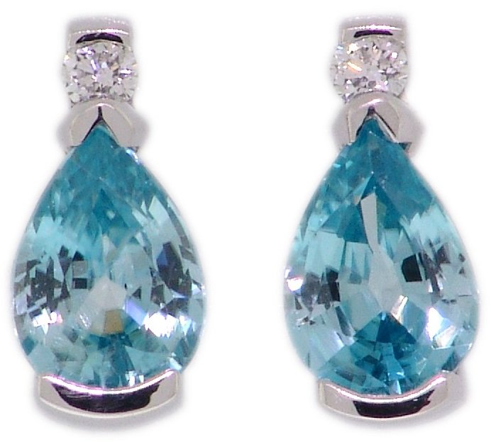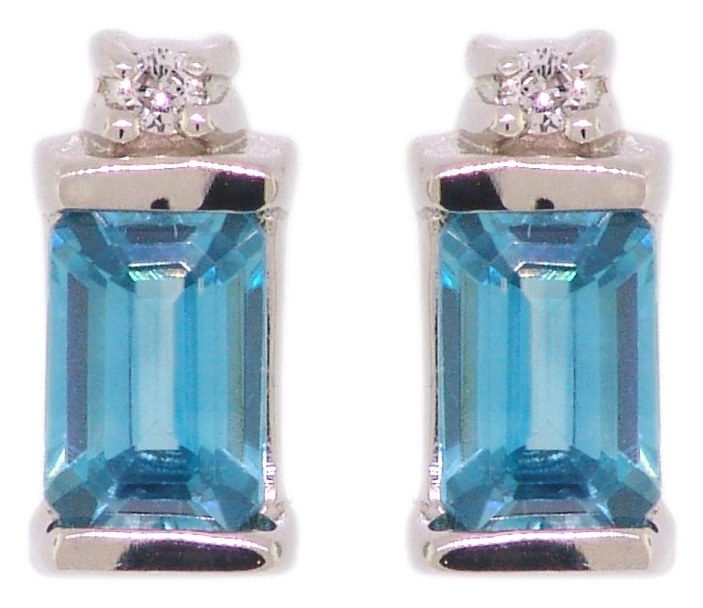| Style # 4521E Ladies 6x4 E.C. Blue Zircon 2=.04TW 14k Earrings Available in yellow or white gold. |