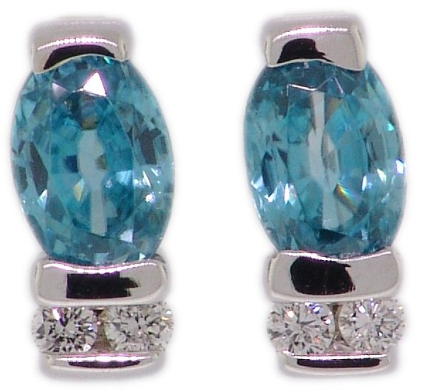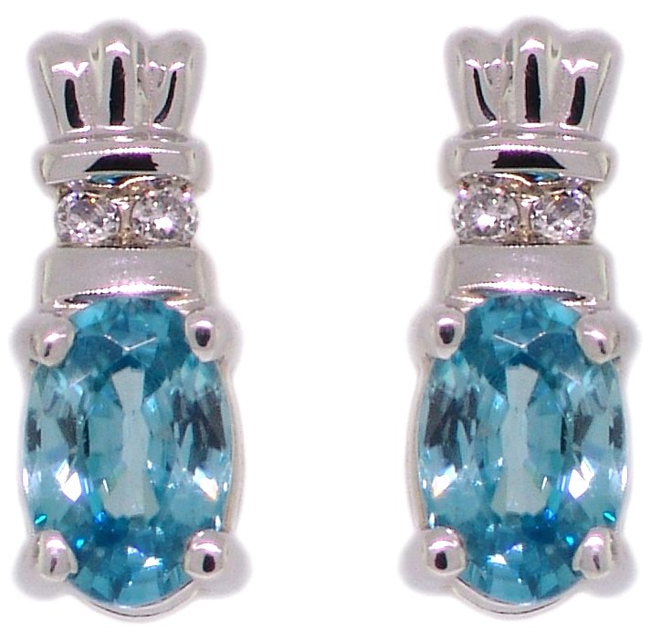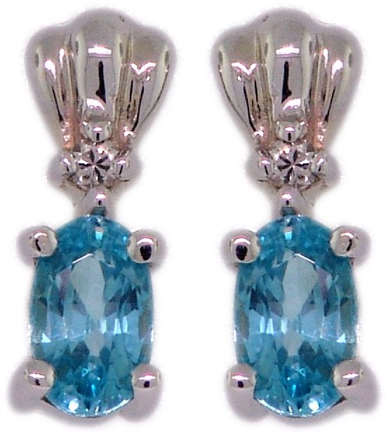 | Style # 4686 Ladies 6x4 Oval Blue Zircon 4=.08TW 14k Earrings Available in yellow or white gold. |