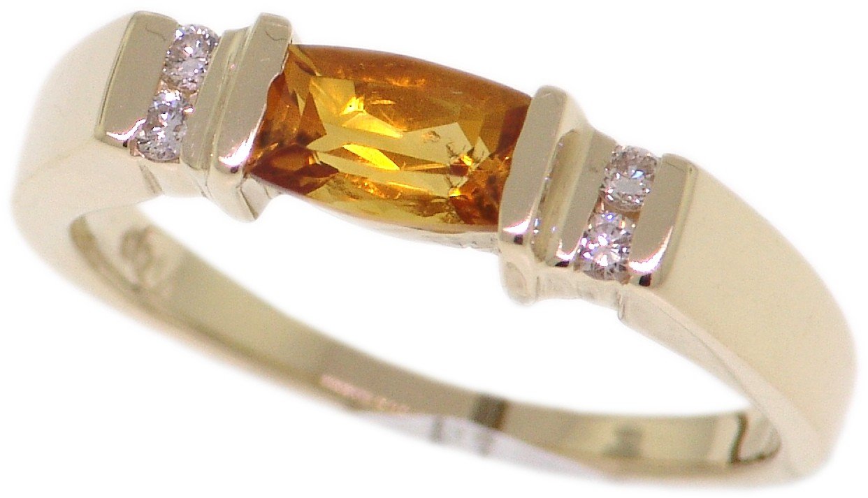 | Style # 4778 Ladies 6x4 Barrel Cut Citrine 4=.08TW 14k Ring Available in yellow or white gold. |