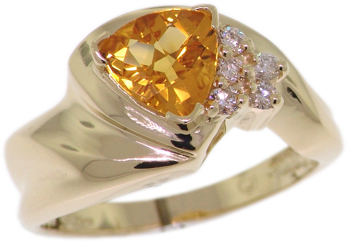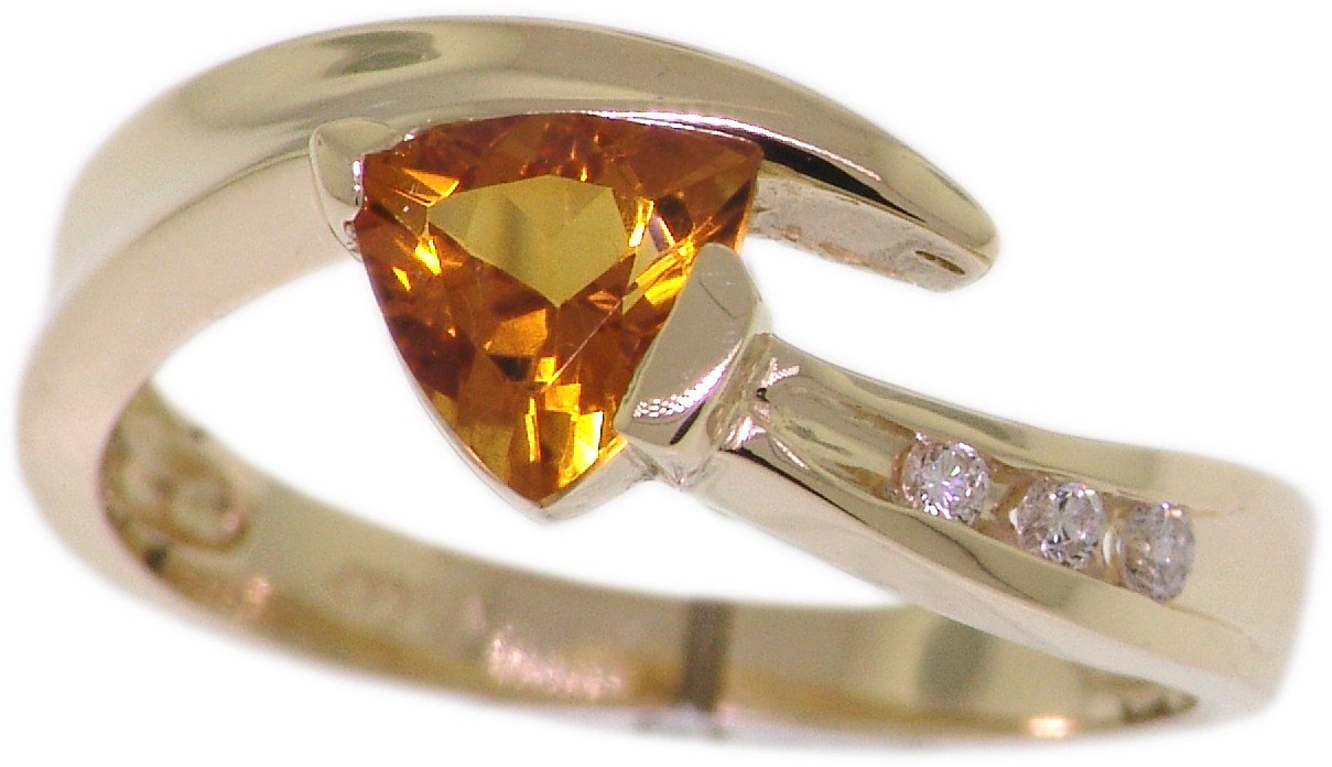 | Style # 4788 Ladies 6x6 Trill Citrine 4=.045TW 14k Ring Available in yellow or white gold. |