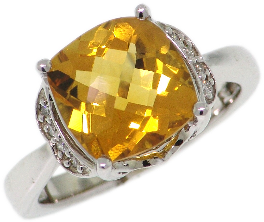| Style # 5363 Ladies 10x10 Cushion Citrine 14=.16TW 14k Ring Available in yellow or white gold. |