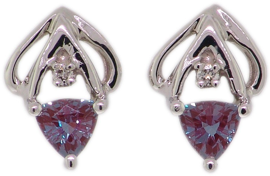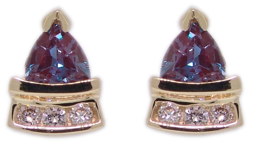 | Style # 4208 Ladies 4x4 Trill Cr. Alexandrite 6=.075TW 14k Earrings Available in yellow or white gold. |