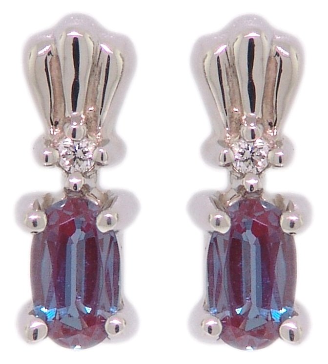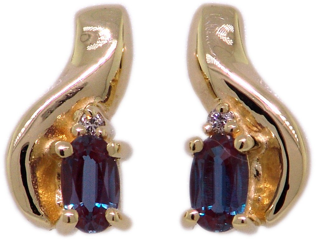 | Style # 4362 Ladies 5x3 Oval Cr. Alexandrite 2=.02TW 14k Earrings Available in yellow or white gold. |
