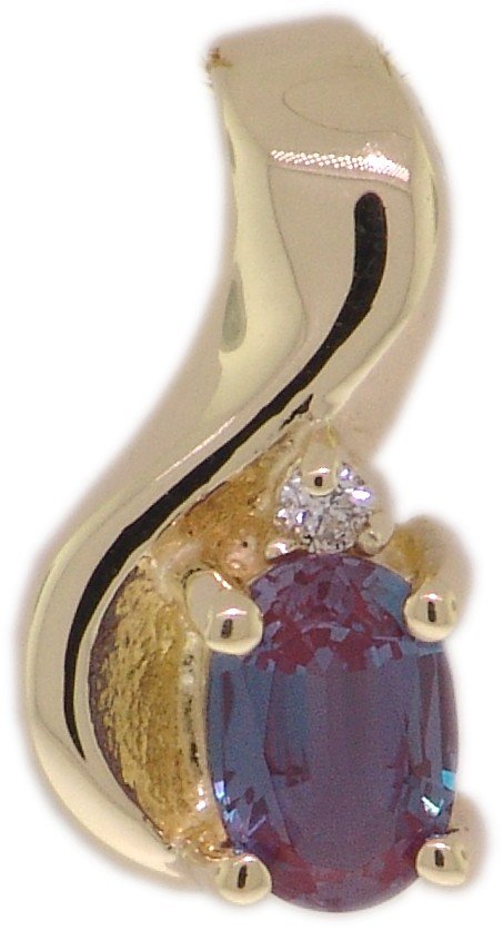 | Style # 4341 Ladies 6x4 Oval Cr. Alexandrite 1=.02TW 14k Pendant Available in yellow or white gold. |