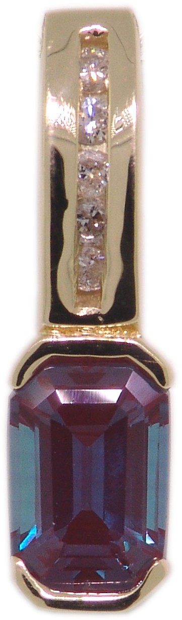 | Style # 4404 Ladies 7x5 E.C. Cr. Alexandrite 5=.075TW 14k Pendant Available in yellow or white gold. |