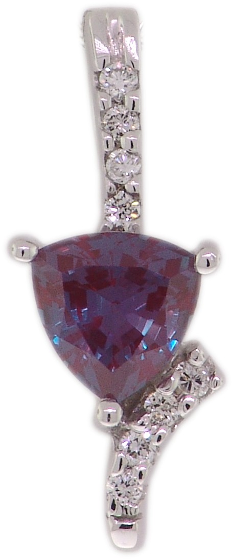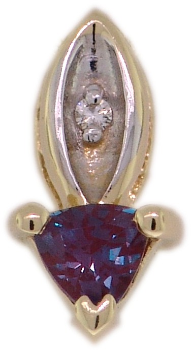 | Style # 4684 Ladies 6x6 Trill Cr. Alexandrite 5=.05TW 14k Pendant Available in yellow or white gold. |