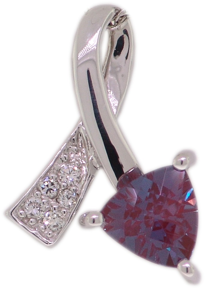 | Style # 4159 Ladies 6x6 Trill Cr. Alexandrite 1=.02TW 14k Pendant Available in yellow or white gold. |