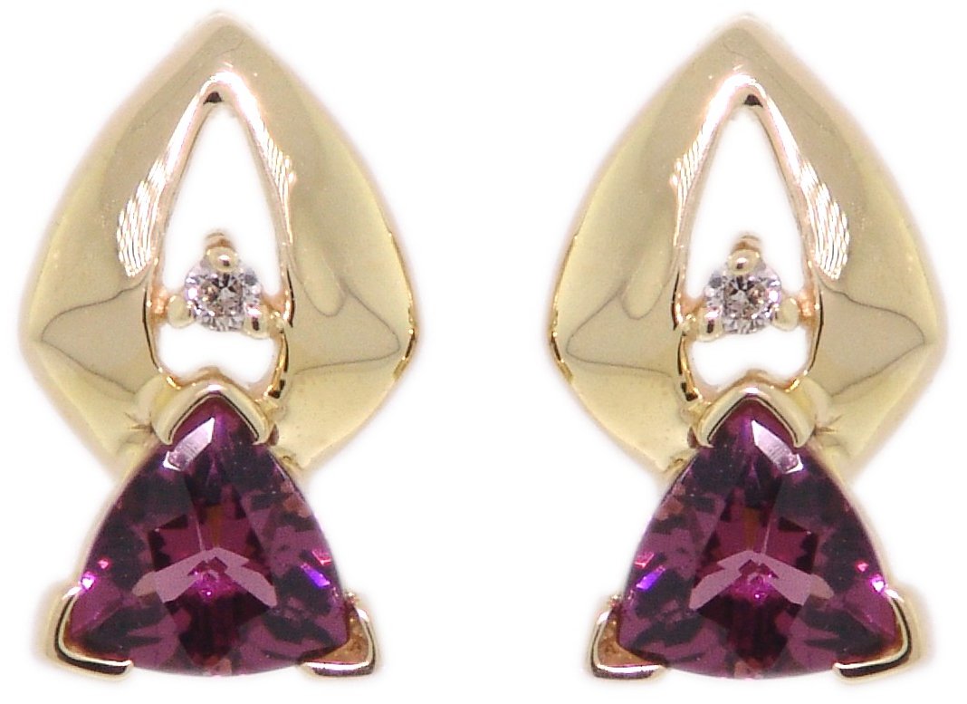 | Style # 4488 Ladies 5x5 Trill Rhodolite Garnet 2=.03TW 14k Earrings Available in yellow or white gold. |