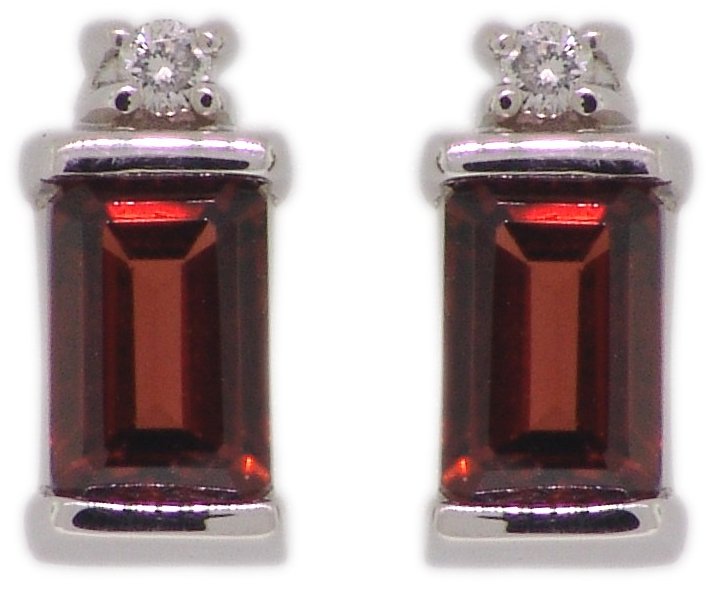 | Style # 4521E Ladies 6x4 E.C. Garnet 2=.04TW 14k Earrings Available in yellow or white gold. |