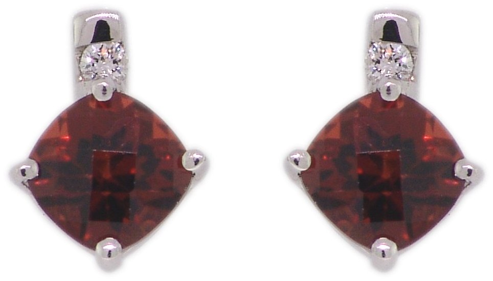 | Style # 5204 Ladies 5x5 Cushion Garnet 2=.04TW 14k Earrings Available in yellow or white gold. |