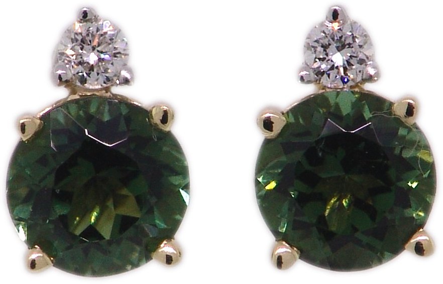 | Style # 3828 Ladies 6MM Round Green Tourmaline 2=.10TW 14k Earrings Available in yellow or white gold. |