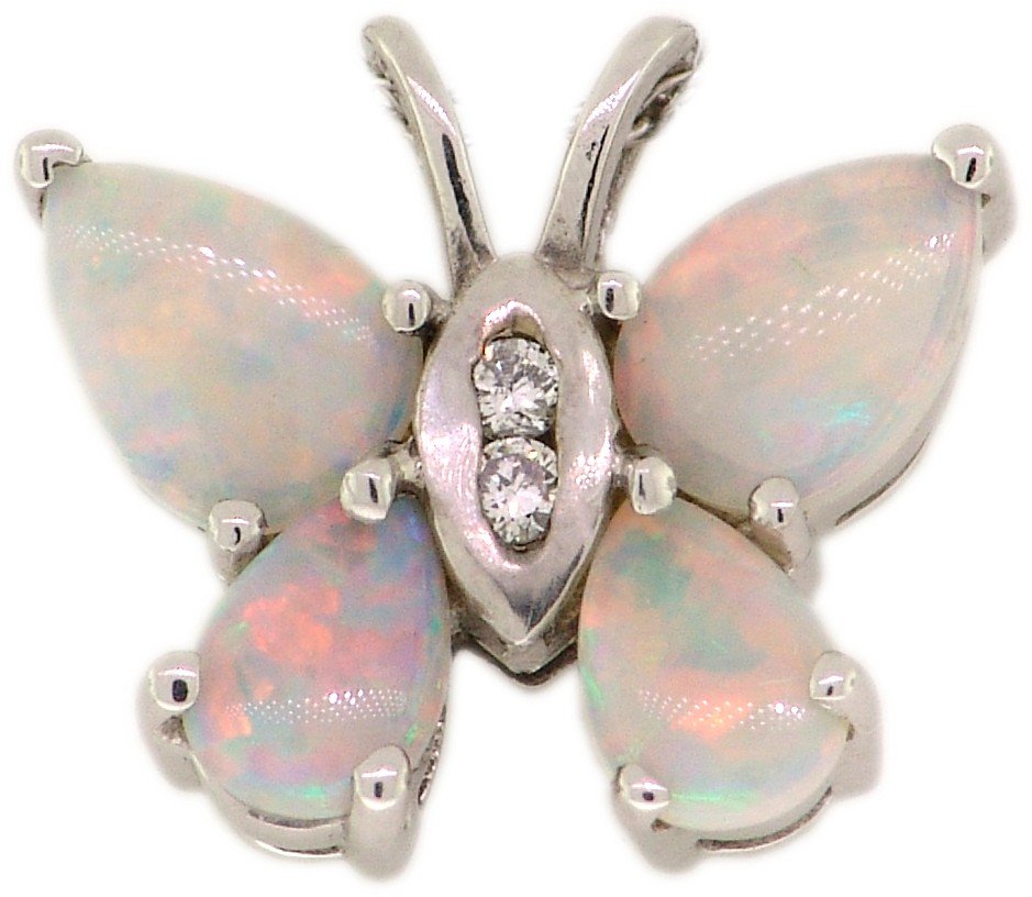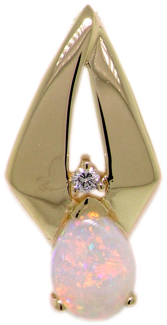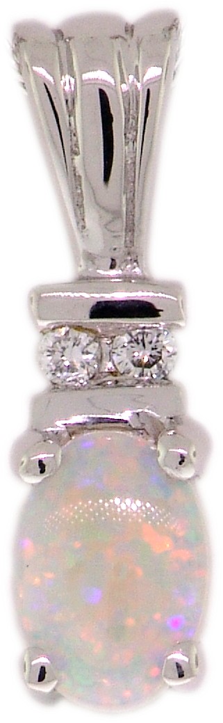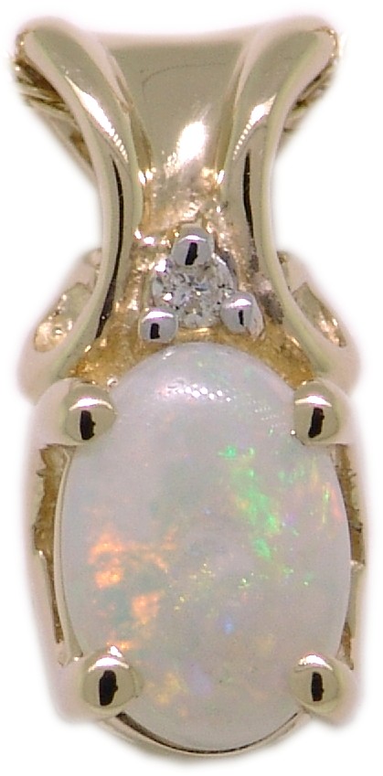 | Style # 4699 Ladies 7x5 Oval Opal 2=.03TW 14k Pendant Available in yellow or white gold. |