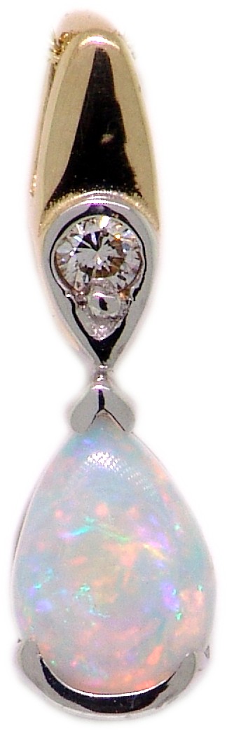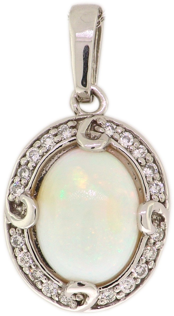 | Style # 5711 Ladies 12x10 Oval Opal 20=.20TW 14k Pendant Available in yellow or white gold. |