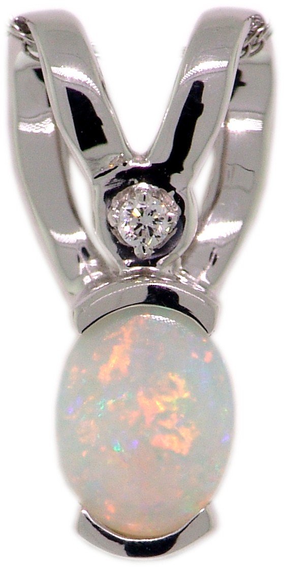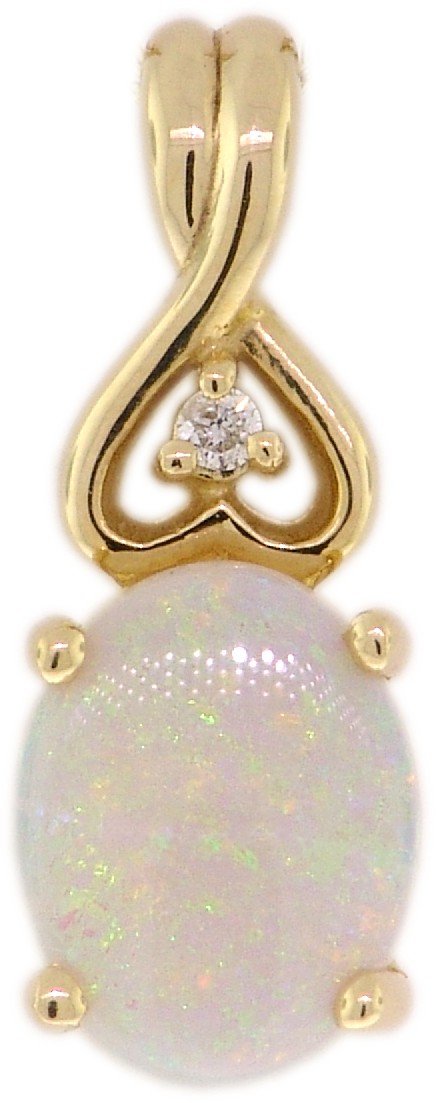 | Style # 4142 Ladies 8x6 Oval Opal 1=.02TW 14k Pendant Available in yellow or white gold. |