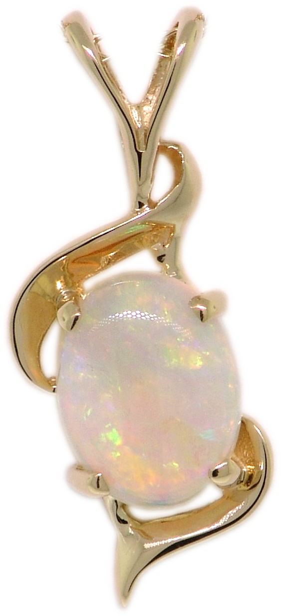 | Style # 1002 Ladies 8x6 Oval Opal 14k Pendant Available in yellow or white gold. |