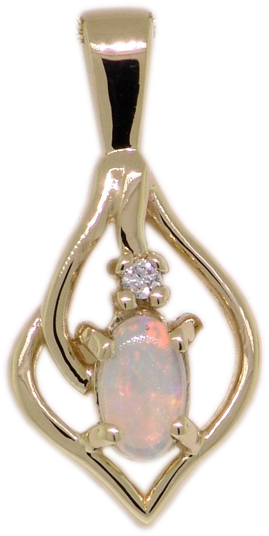 | Style # 1095 Ladies 5x3 Oval Opal 1=.01TW 14k Pendant Available in yellow or white gold. |