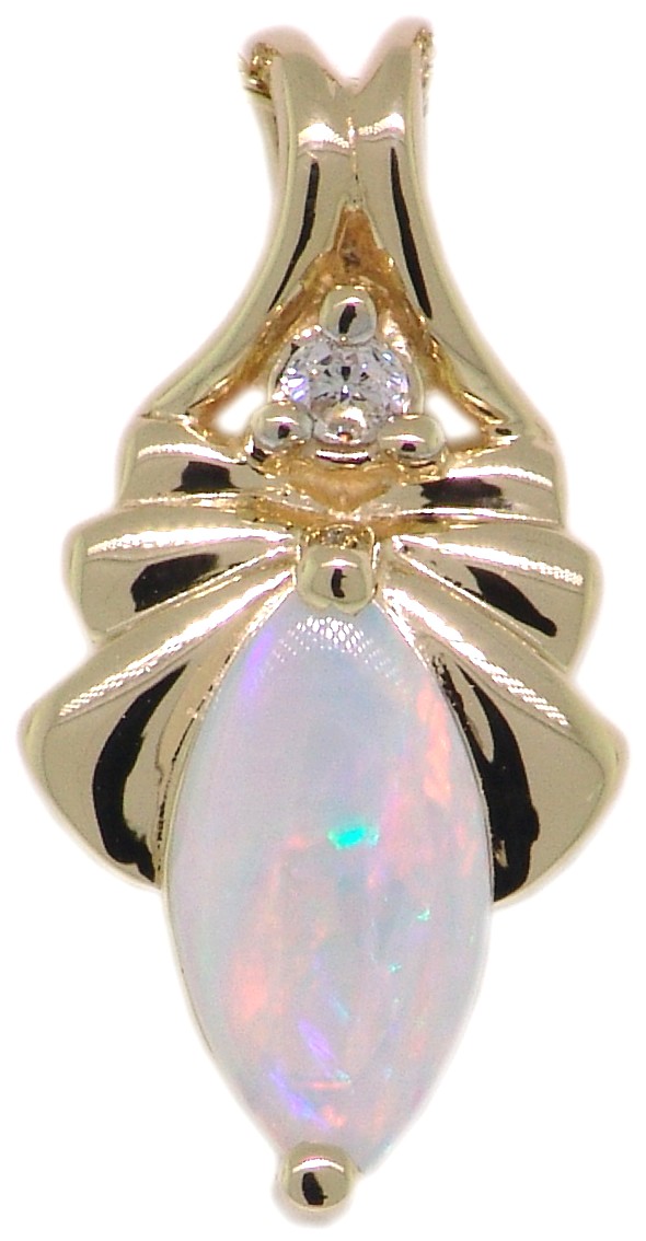 | Style # 1620 Ladies 10x5 Marq Opal 1=.03TW 14k Pendant Available in yellow or white gold. |