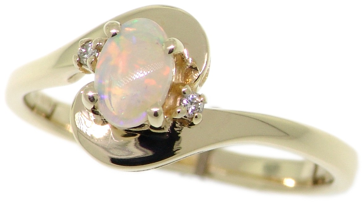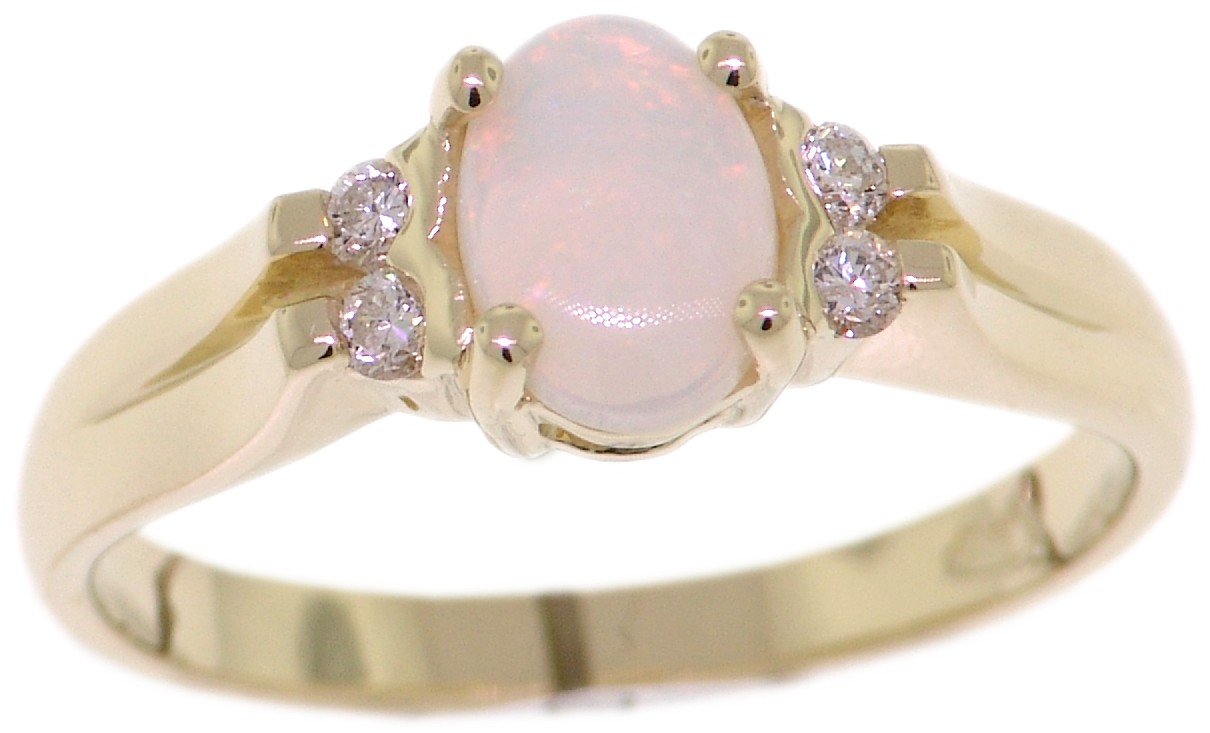 | Style # 2241 Ladies 6x4 Oval Opal 2=.02TW 14k Ring Available in yellow or white gold. |