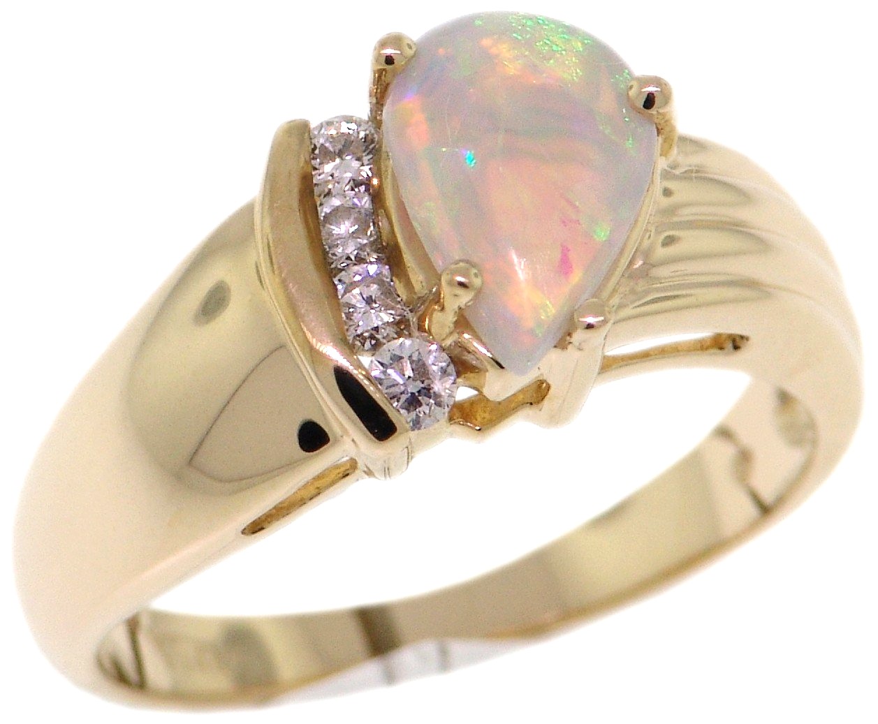 | Style # 2148 Ladies 7x5 Oval Opal 4=.10TW 14k Ring Available in yellow or white gold. |