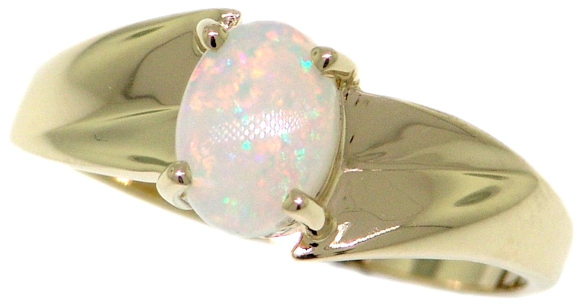 | Style # 2246 Ladies 6x4 Oval Opal 14k Ring Available in yellow or white gold. |