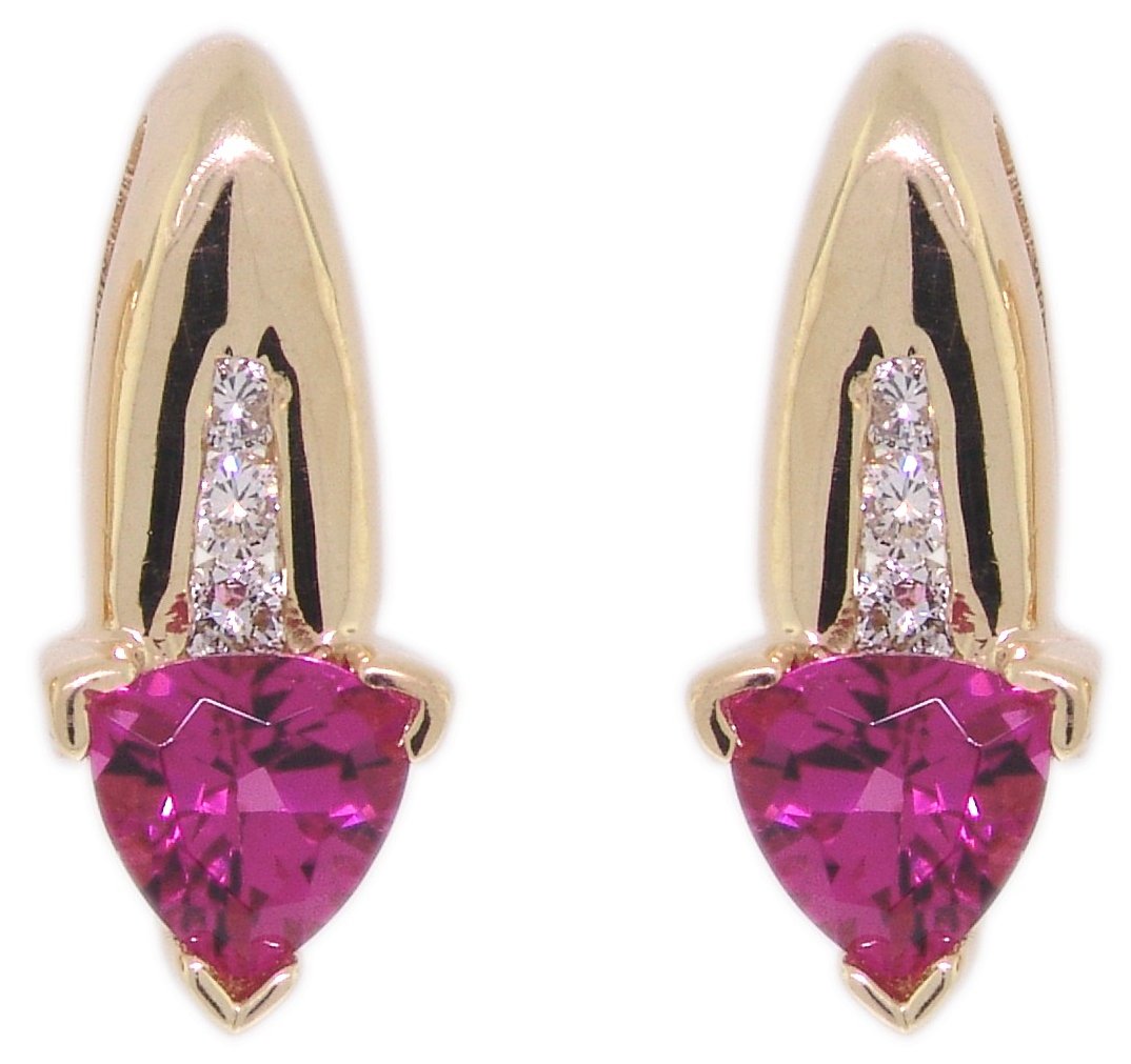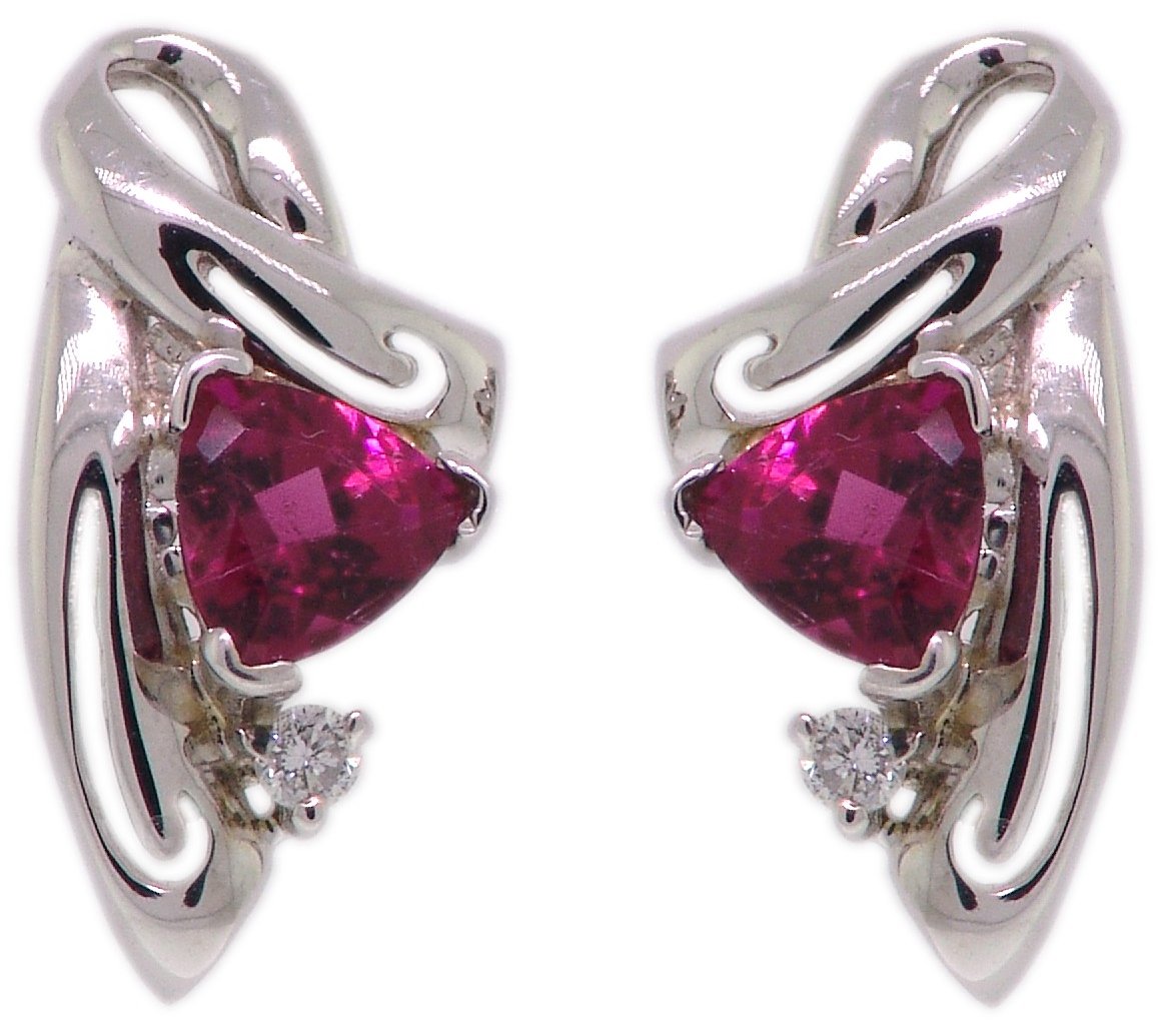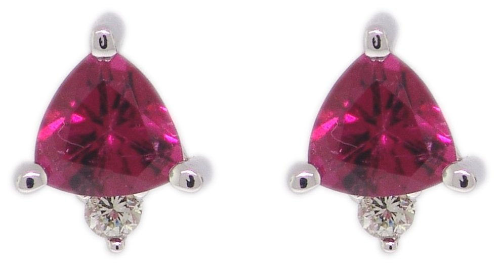 | Style # 3824 Ladies 5x5 Trill Pink Tourmaline 6=.15TW 14k Earrings Available in yellow or white gold. |