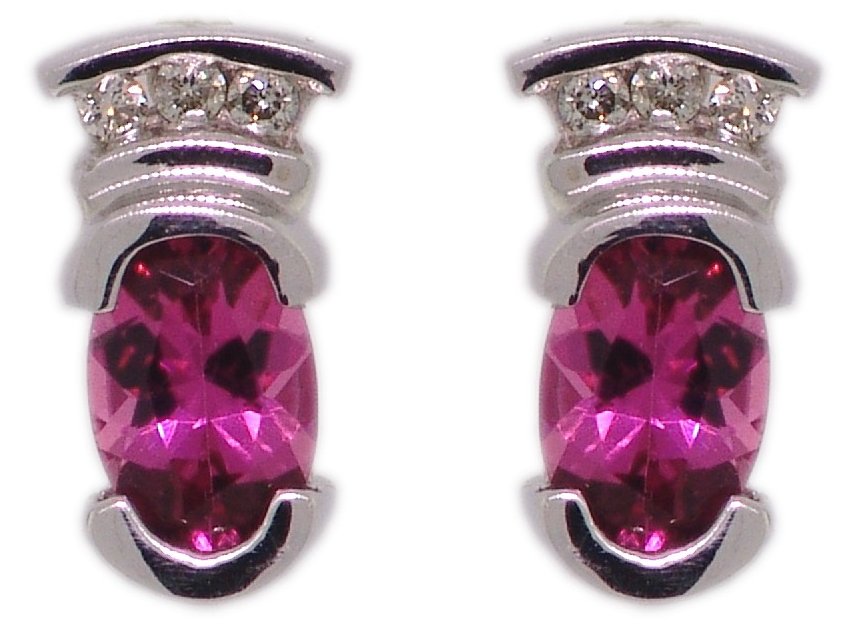 | Style # 4151 Ladies 6x4 Oval Pink Tourmaline 6=.06TW 14k Earrings Available in yellow or white gold. |