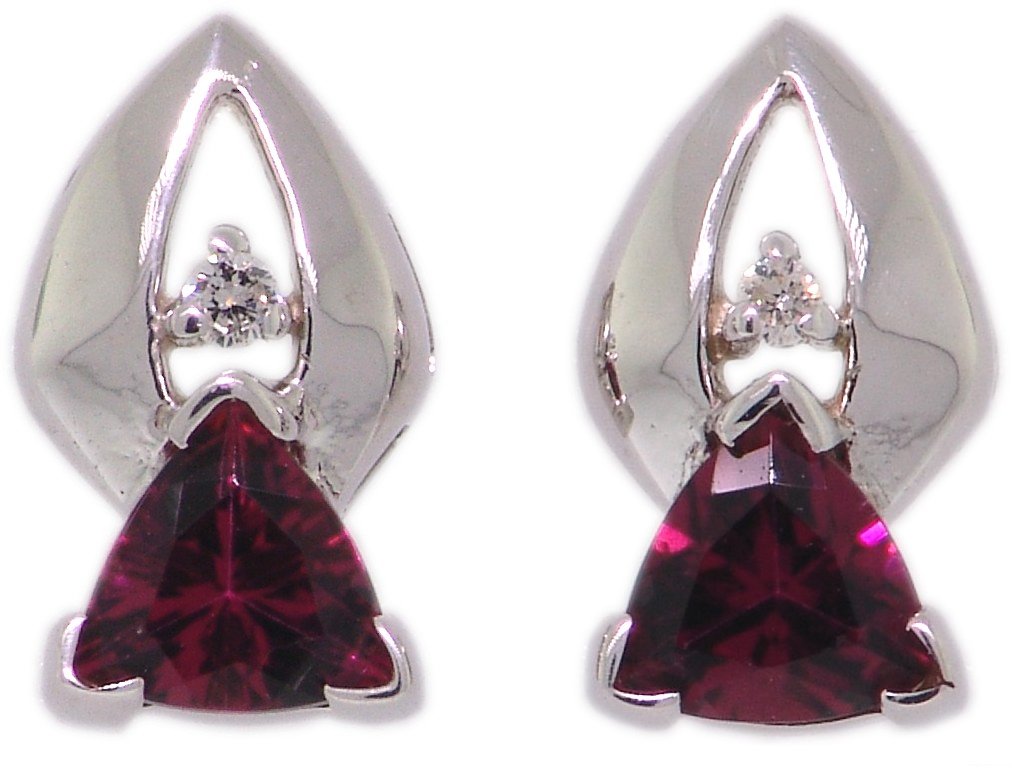 | Style # 2250 Ladies 5x5 Trill Pink Tourmaline 2=.06TW 14k Earrings Available in yellow or white gold. |
