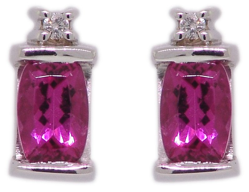 | Style # 4521E Ladies 6x4 E.C. Pink Tourmaline 2=.04TW 14k Earrings Available in yellow or white gold. |