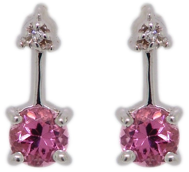 | Style # 4920 Ladies 4mm Rd Pink Tourmaline 2=.01TW 14k Earrings Available in yellow or white gold. |