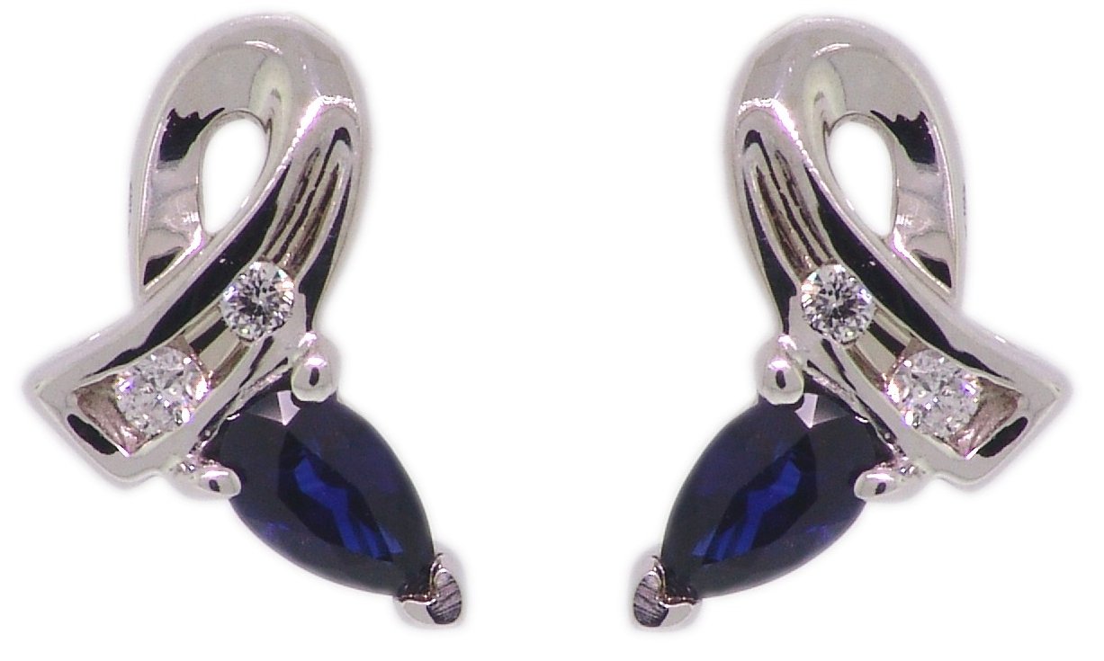 | Style # 5141 Ladies 5x3 P.S. Blue Sapphire 2=.04TW 14k Earrings Available in yellow or white gold. |