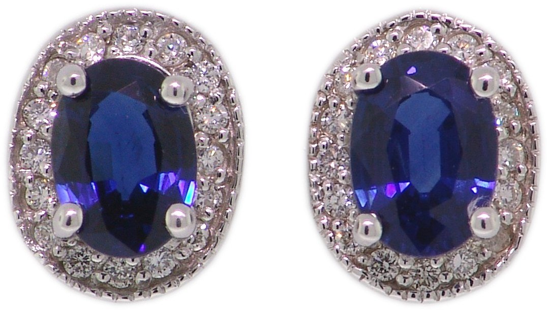 | Style # 5036 Ladies 7x5 Oval Blue Sapphire 32=.24TW 14k Earrings Available in yellow or white gold. |
